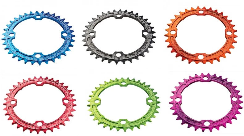 Les plateaux race face narrow wide sont disponibles en direct mount et en entaxe de 104, 110 et 130 et 64. Les dentures proposés en entraxe 104 4b du 30t au 36t en direct mount ( sram ) du 26t au 38t en direct mount rf du 26t au 36t en entraxe de 110 5b du 38t au 42t en entraxe de 130 5b du 40t au 44t et enfin en entraxe de 64 24t. Les plateaux Race face sont adaptables sur la quasi totalité des pédaliers.Les couleurs bleu, rouge, vert, orange, noir et violet.